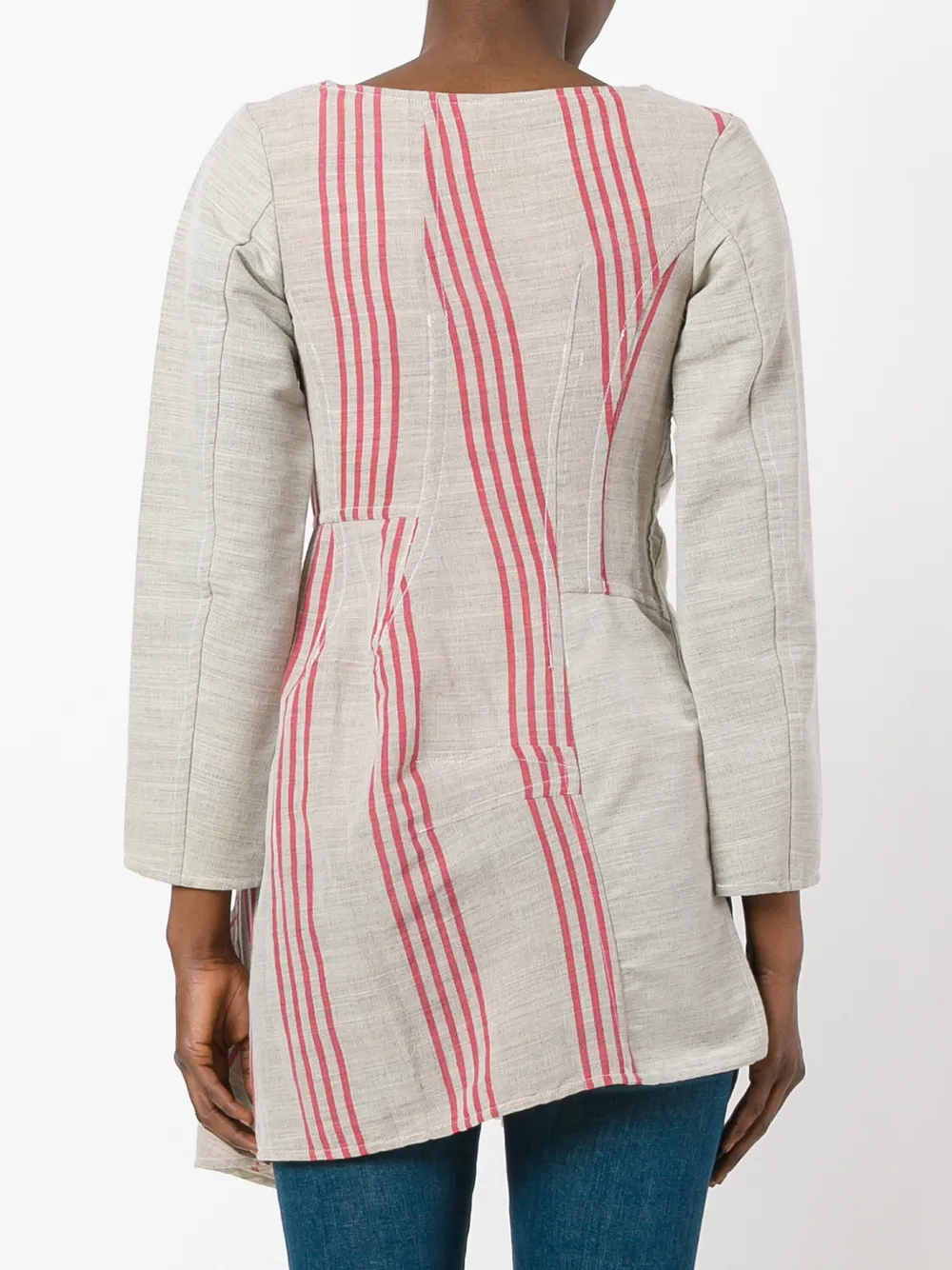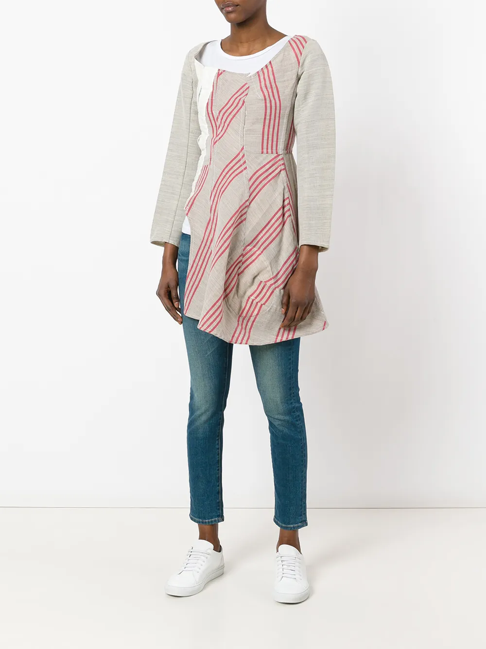 Robe Deconstructed en laine et coton mélangés multicolores Comme Des Garçons Vintage avec design sans col, manches trois quarts, design colour block, motif de rayures et ourlet asymétrique. Veuillez noter que nos articles vintage ne sont pas neufs et qu’ils peuvent avoir de légères imperfections.