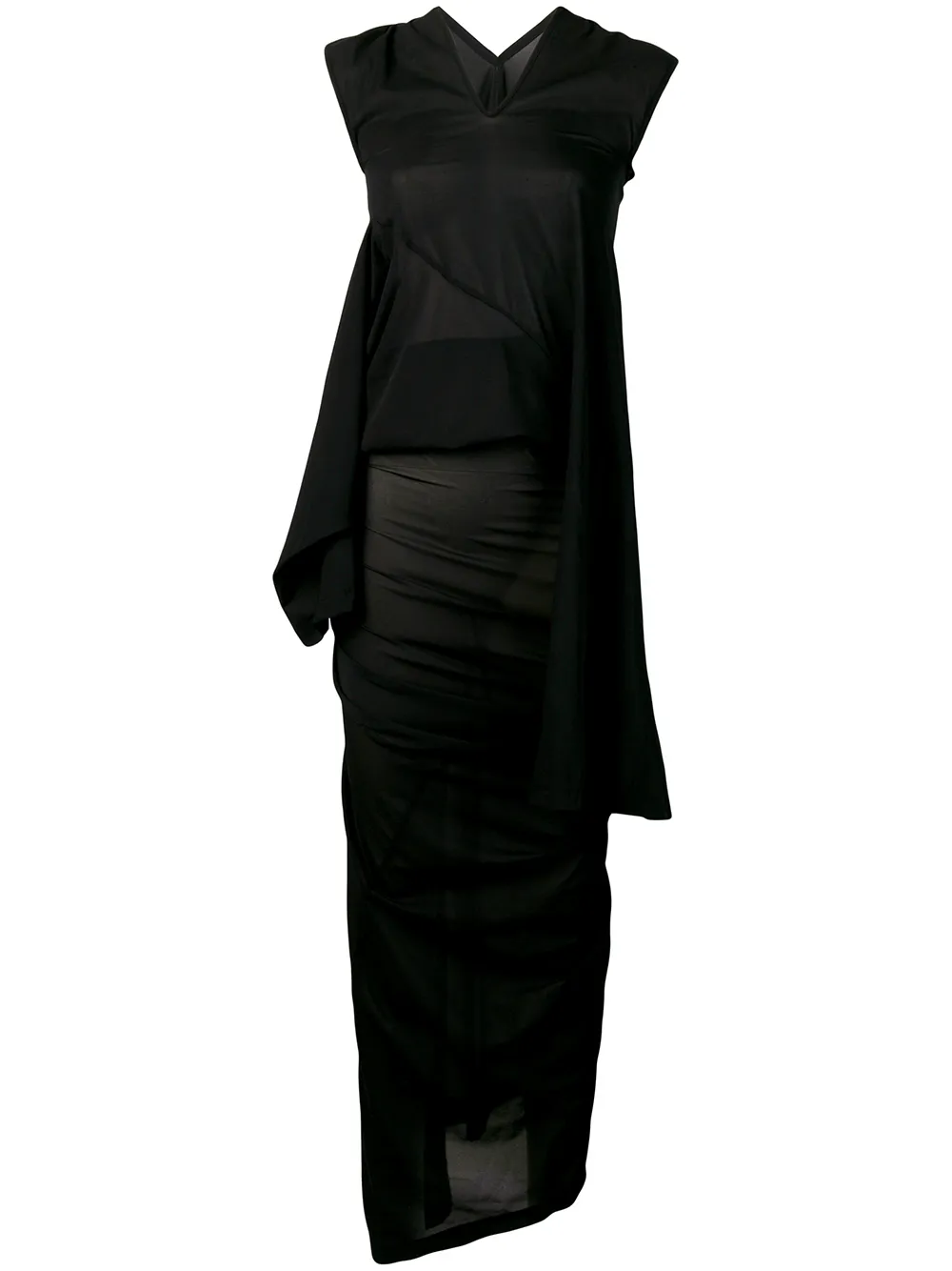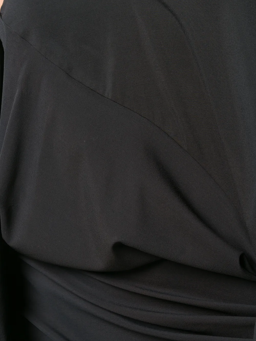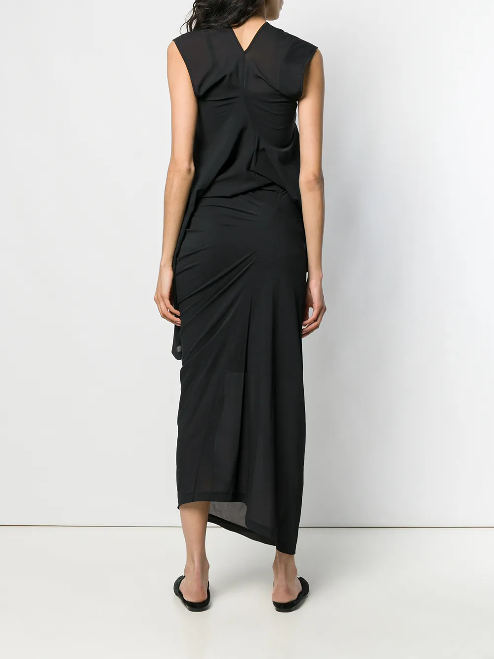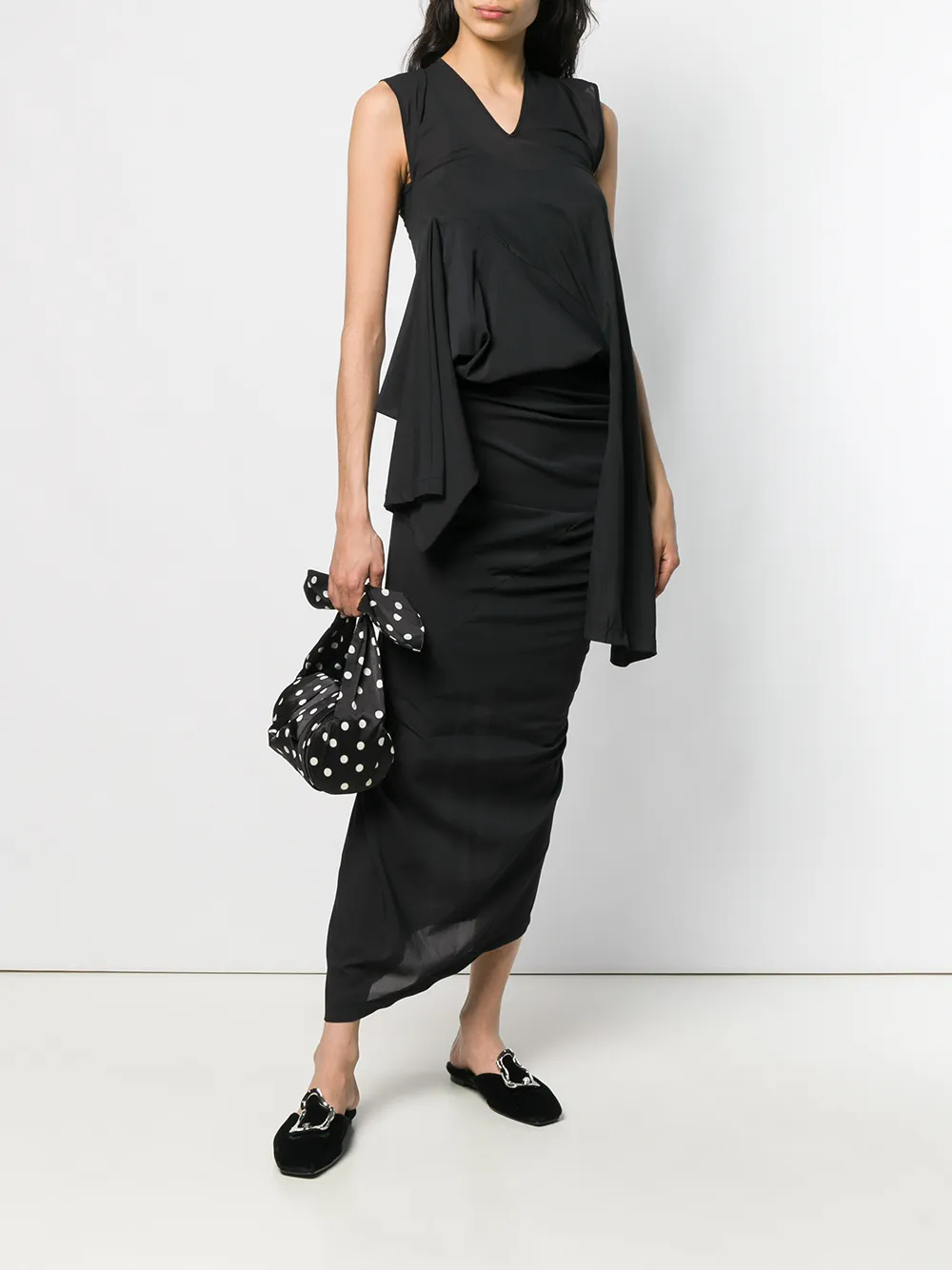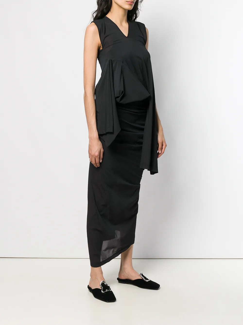 Robe Lumps & Bumps Comme Des Garçons Vintage avec col v, un design sans manches, coupe longue, ourlet asymétrique, design drapé et silhouette ajustée. Couleur : noir. Veuillez noter que nos articles vintage ne sont pas neufs et qu’ils peuvent avoir de légères imperfections.