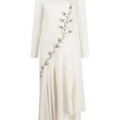 Fleur brodée, encolure bateau, manches longues, détails de plis, détails en dentelle à fleurs, ourlet asymétrique, doublure intégrale. Matière : soie. Veuillez noter que cet article n’est pas neuf et peut présenter de légères imperfections qui témoignent de son histoire. En lui offrant une seconde vie, vous faites le choix d’avoir un impact “POSITIVELY CONSCIOUS” sur notre planète.