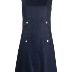 Bleu marine, coton et lin mélangés, encolure ronde, fermeture zippée dissimulée à l’arrière, design sans manches, boutons décoratifs, détail de fausse poche, hauteur genou. POSITIVELY CONSCIOUS – Votre choix : produit fabriqué selon des pratiques visant à réduire l’impact environnemental. Cet article a un impact environnemental réduit car il ne nécessite pas de nouvelles ressources. Vous êtes ainsi assuré·e de faire le bon choix pour la planète.