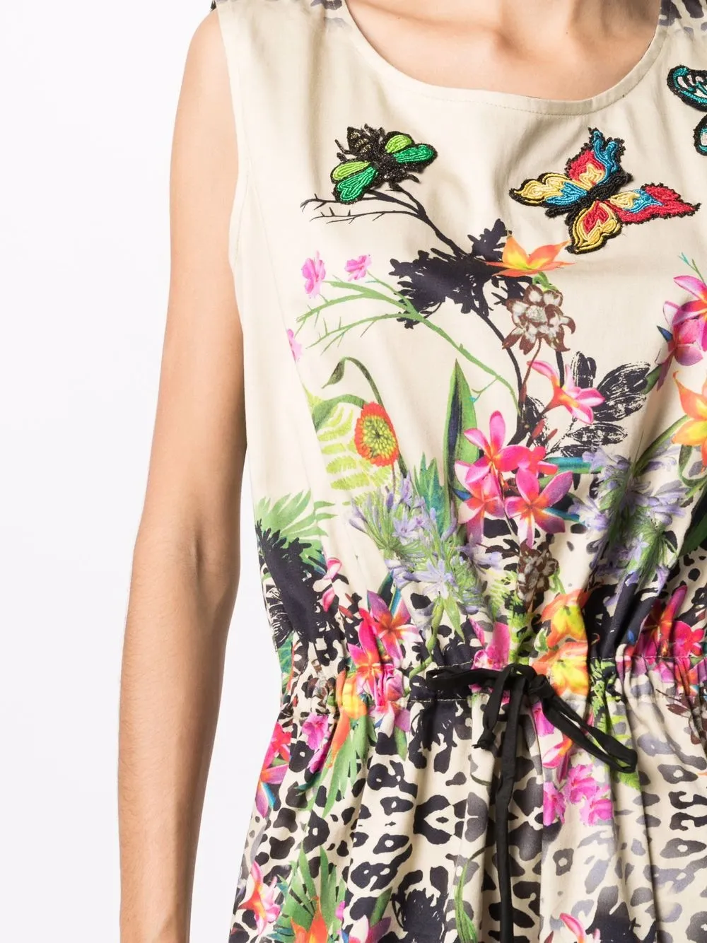 Imprimé à fleurs, imprimé animalier, imprimé papillon, encolure ronde, design sans manches, fermeture zippée à l’arrière, lien de resserrage à la taille, ourlet droit, hauteur genou. Veuillez noter que cet article n’est pas neuf et peut présenter de légères imperfections qui témoignent de son histoire. En lui offrant une seconde vie, vous faites le choix d’avoir un impact “POSITIVELY CONSCIOUS” sur notre planète.
