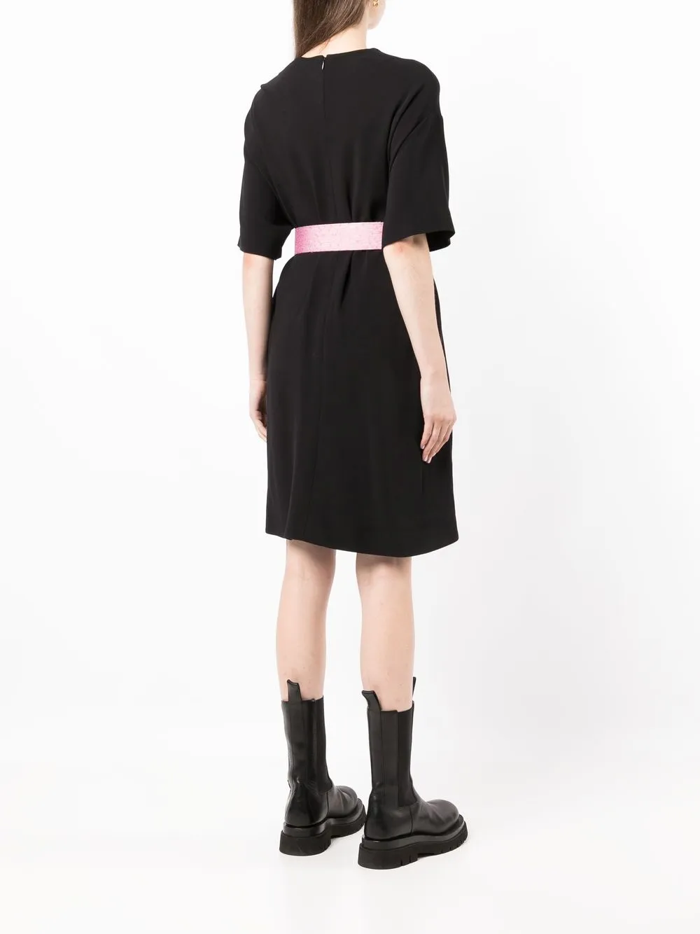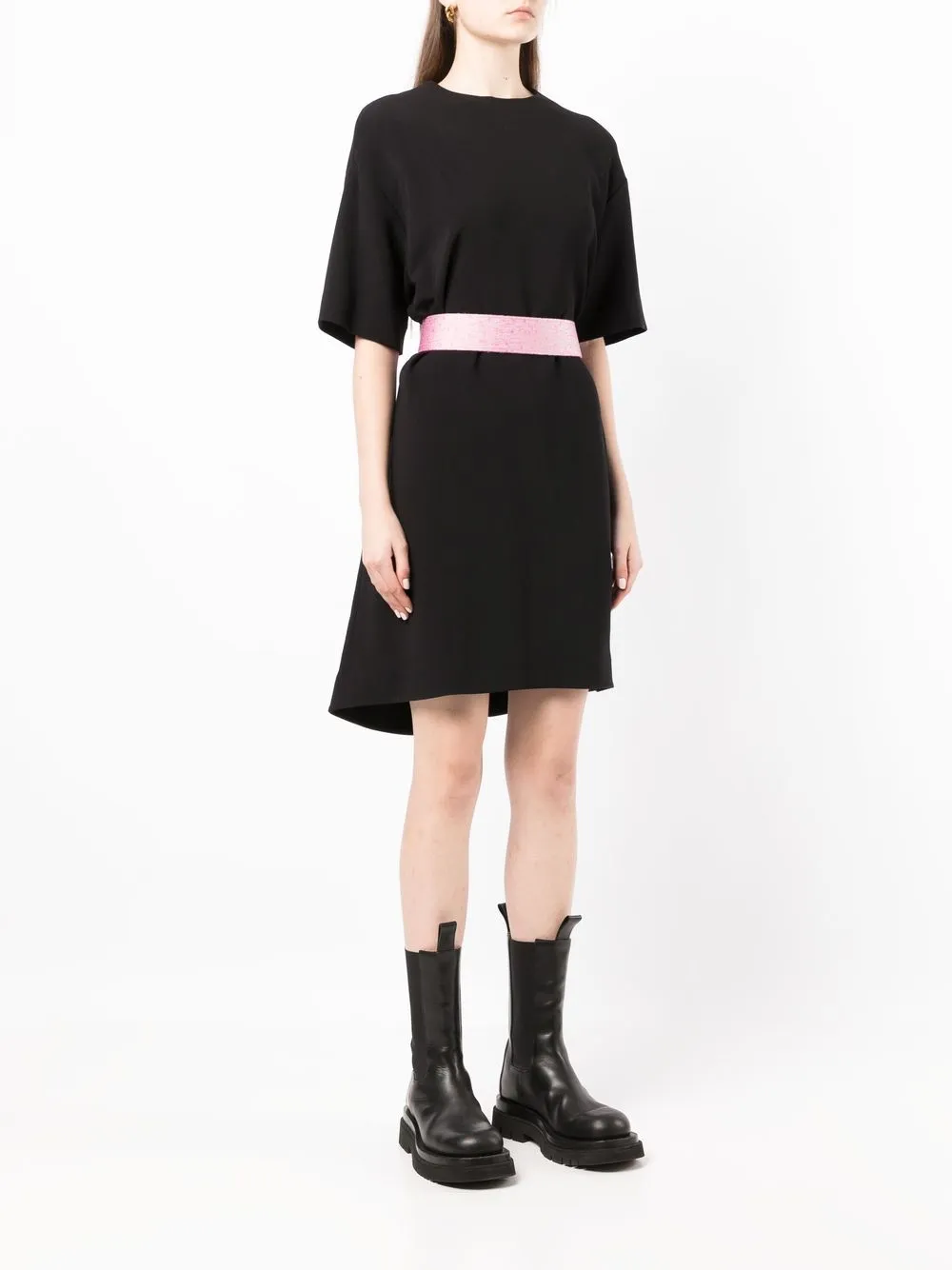Noir, coton et soie mélangés, encolure ronde, fermeture zippée dissimulée à l’arrière, épaules tombantes, manches courtes, taille ceinturée, coupe courte, ourlet droit. POSITIVELY CONSCIOUS – Votre choix : produit fabriqué selon des pratiques visant à réduire l’impact environnemental. Cet article a un impact environnemental réduit car il ne nécessite pas de nouvelles ressources. Vous êtes ainsi assuré·e de faire le bon choix pour la planète.