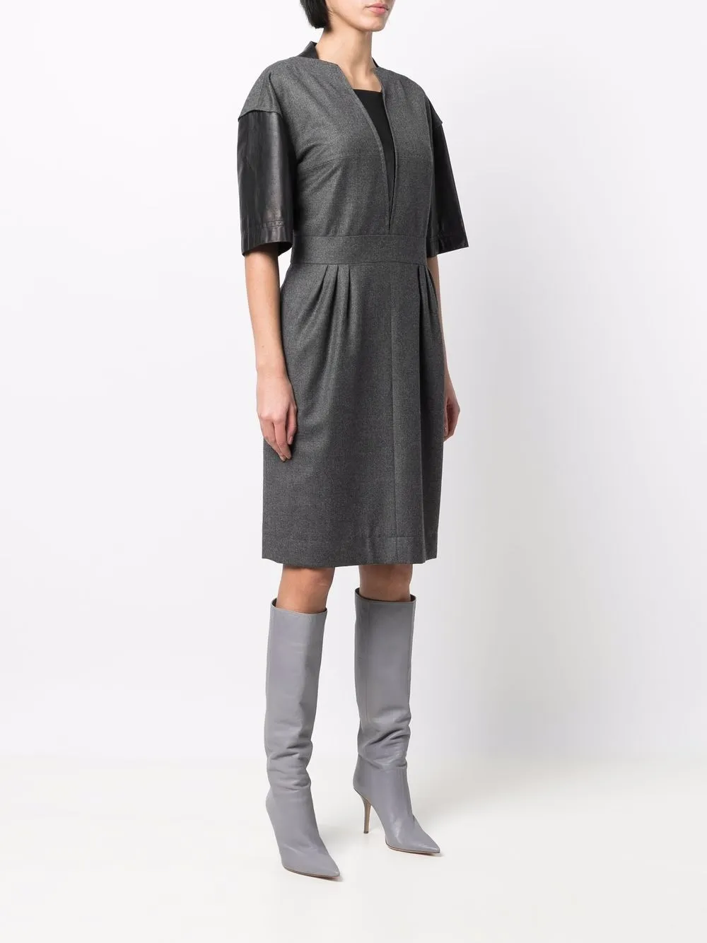 Design patchwork, détails de fronces, encolure ronde, épaules tombantes, manches courtes, taille ajustée, fermeture zippée dissimulée à l’arrière, jupe trapèze, hauteur genou, ourlet droit, doublure en soie. POSITIVELY CONSCIOUS – Votre choix : produit fabriqué selon des pratiques visant à réduire l’impact environnemental. Cet article a un impact environnemental réduit car il ne nécessite pas de nouvelles ressources. Vous êtes ainsi assuré·e de faire le bon choix pour la planète.