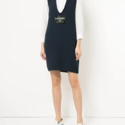 robe en maille à détails en tweed