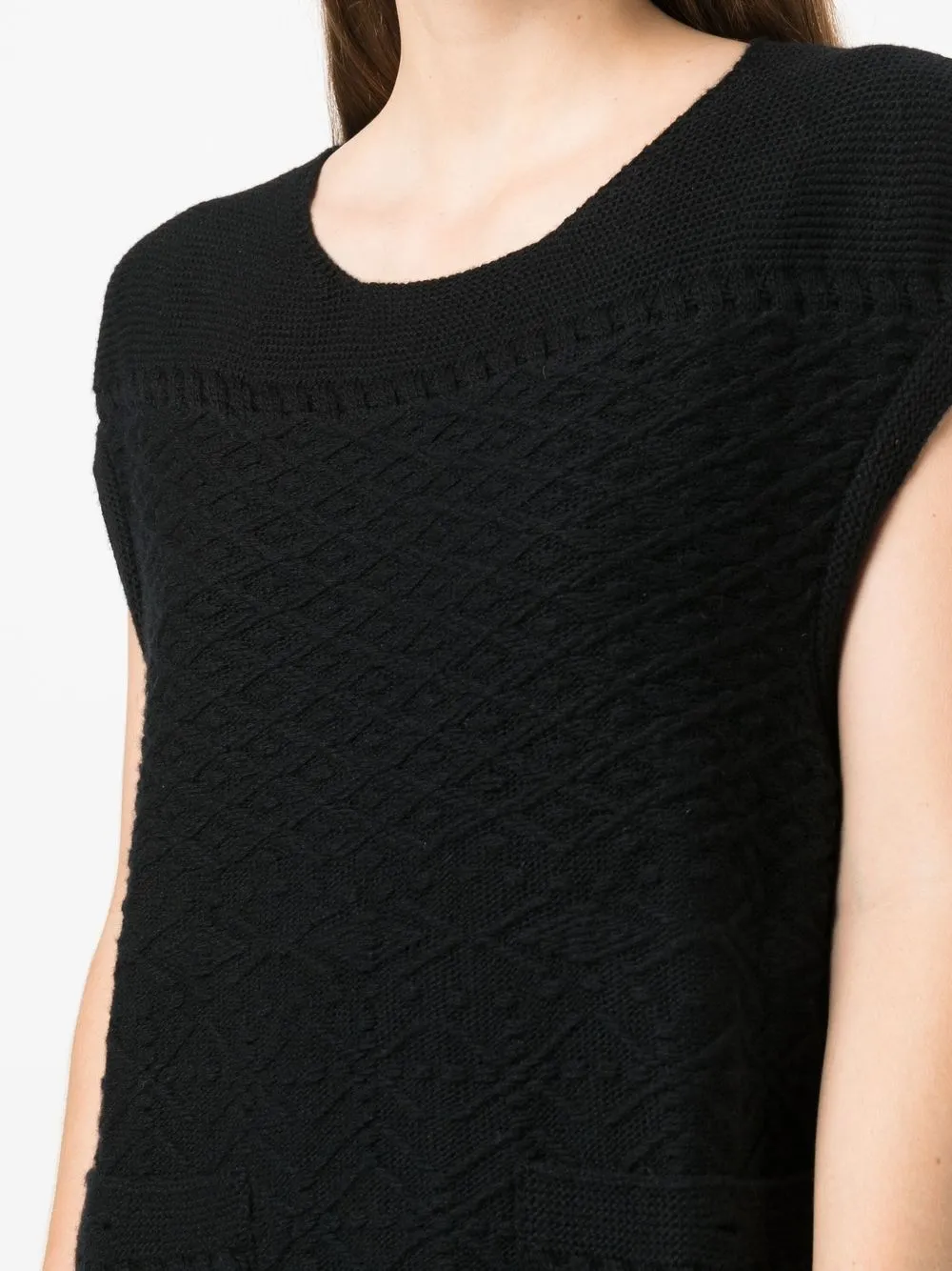 Noir/blanc, laine, finitions en tweed, design en maille, encolure ronde, manches courtes, coupe évasée, longueur au dessus du genou. POSITIVELY CONSCIOUS – Votre choix : produit fabriqué selon des pratiques visant à réduire l’impact environnemental. Cet article a un impact environnemental réduit car il ne nécessite pas de nouvelles ressources. Vous êtes ainsi assuré·e de faire le bon choix pour la planète.