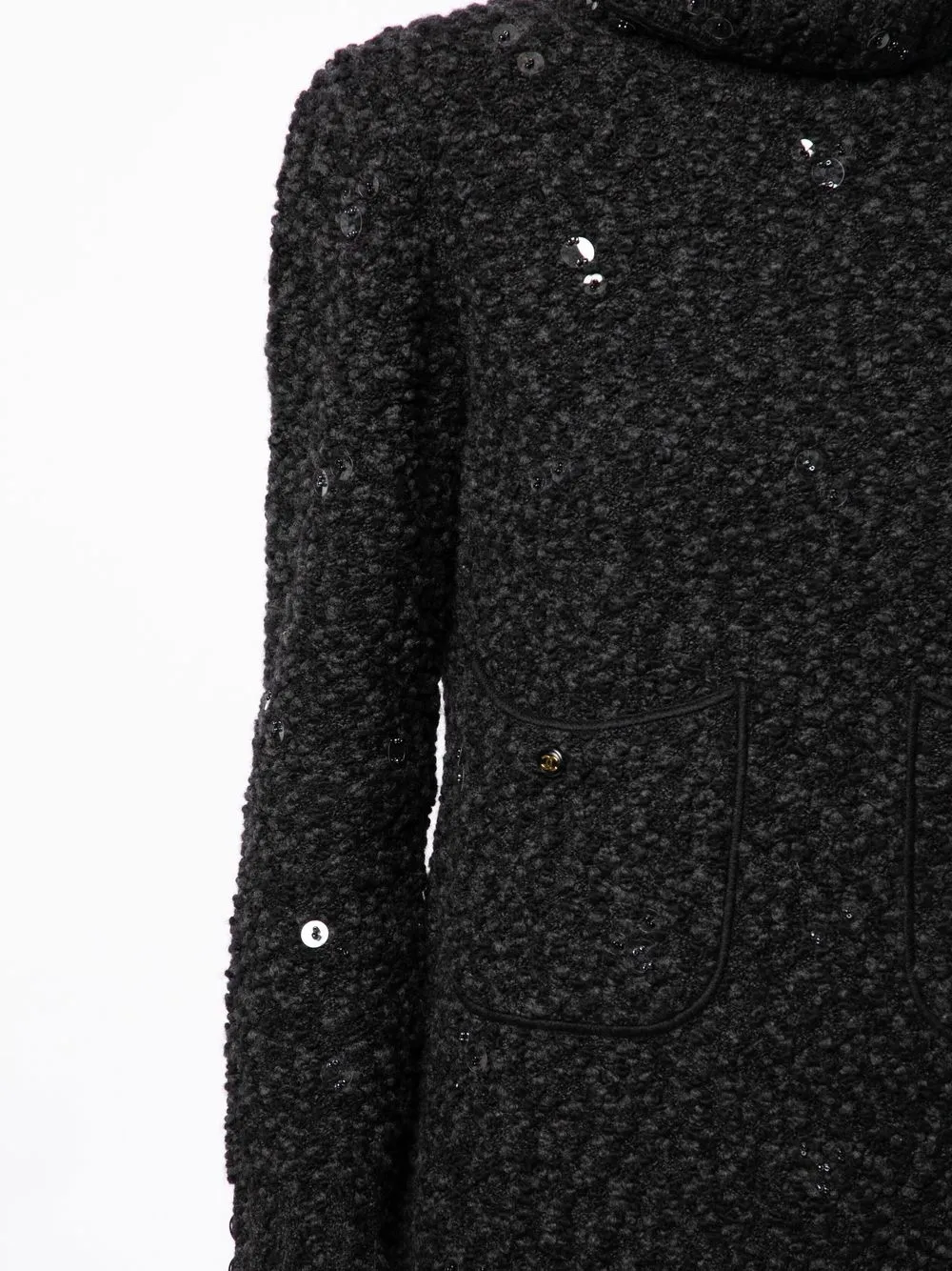 Noir, laine mélangée, design en maille, design en fil bouclé, ornements en sequins, col montant, manches longues, coupe courte, ourlet droit. État : BON. Cette pièce d’occasion a précédemment été utilisée, cependant elle est en bon état et présente des signes minimes d’utilisation. Il peut s’agir d’une décoloration du matériau, du placage ou de griffes.. POSITIVELY CONSCIOUS – Votre choix : produit fabriqué selon des pratiques visant à réduire l’impact environnemental. Cet article a un impact environnemental réduit car il ne nécessite pas de nouvelles ressources. Vous êtes ainsi assuré·e de faire le bon choix pour la planète.