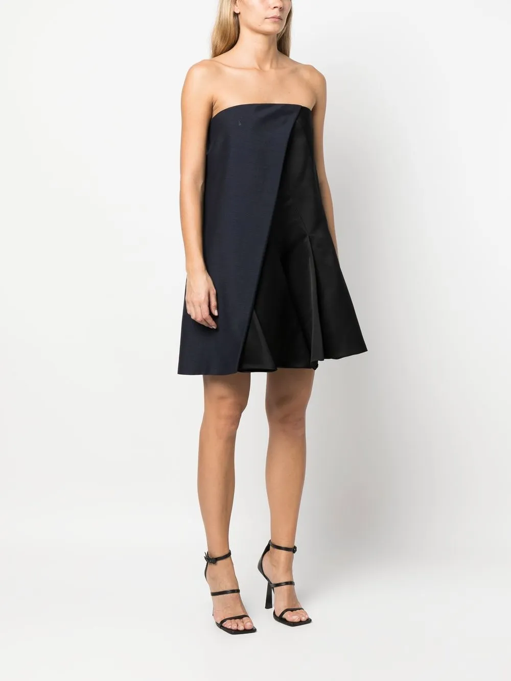 Noir, bleu marine, soie, design à empiècements, sans bretelles, ourlet péplum, coupe courte. POSITIVELY CONSCIOUS – Votre choix : produit fabriqué selon des pratiques visant à réduire l’impact environnemental. Cet article a un impact environnemental réduit car il ne nécessite pas de nouvelles ressources. Vous êtes ainsi assuré·e de faire le bon choix pour la planète.