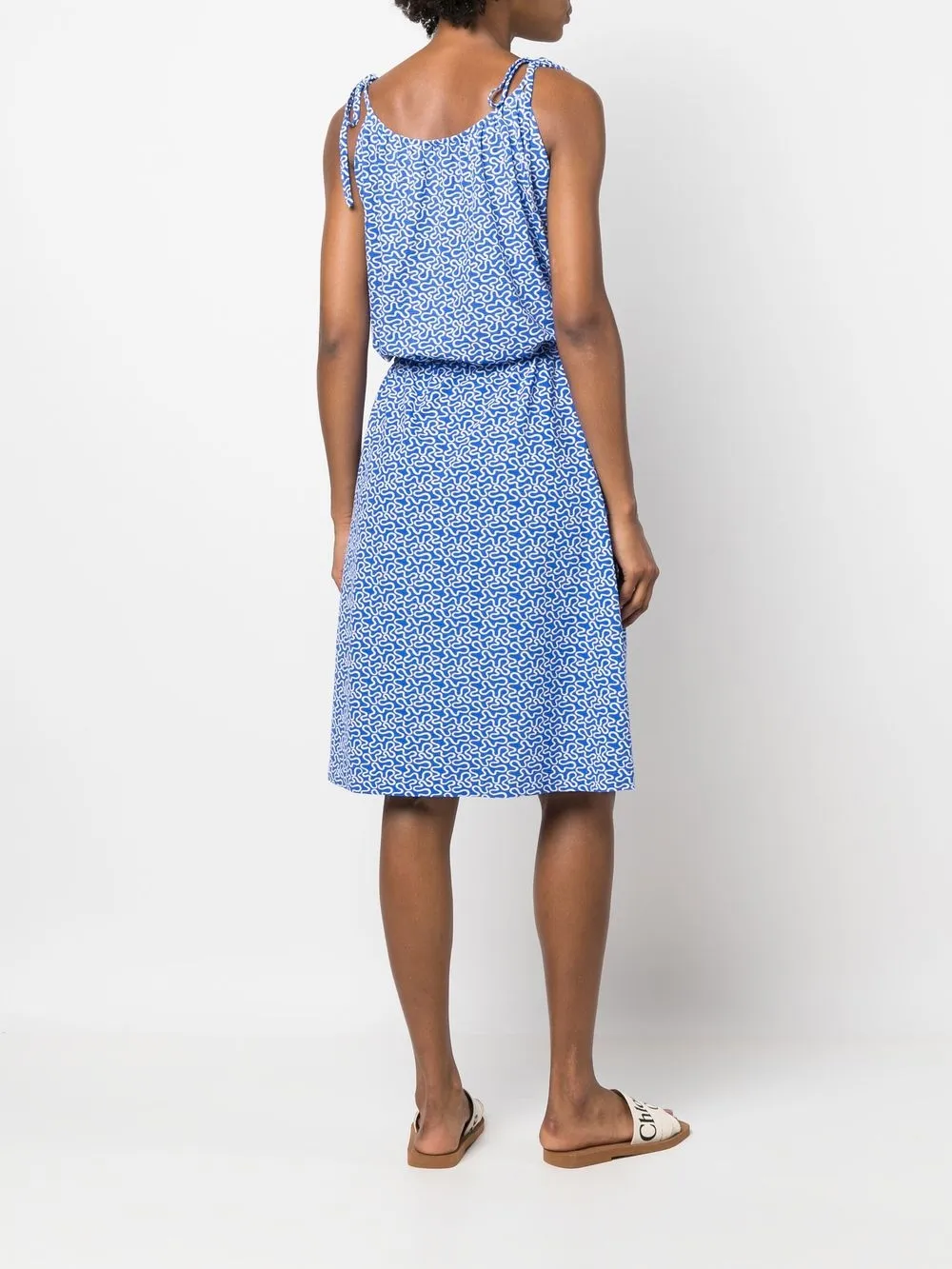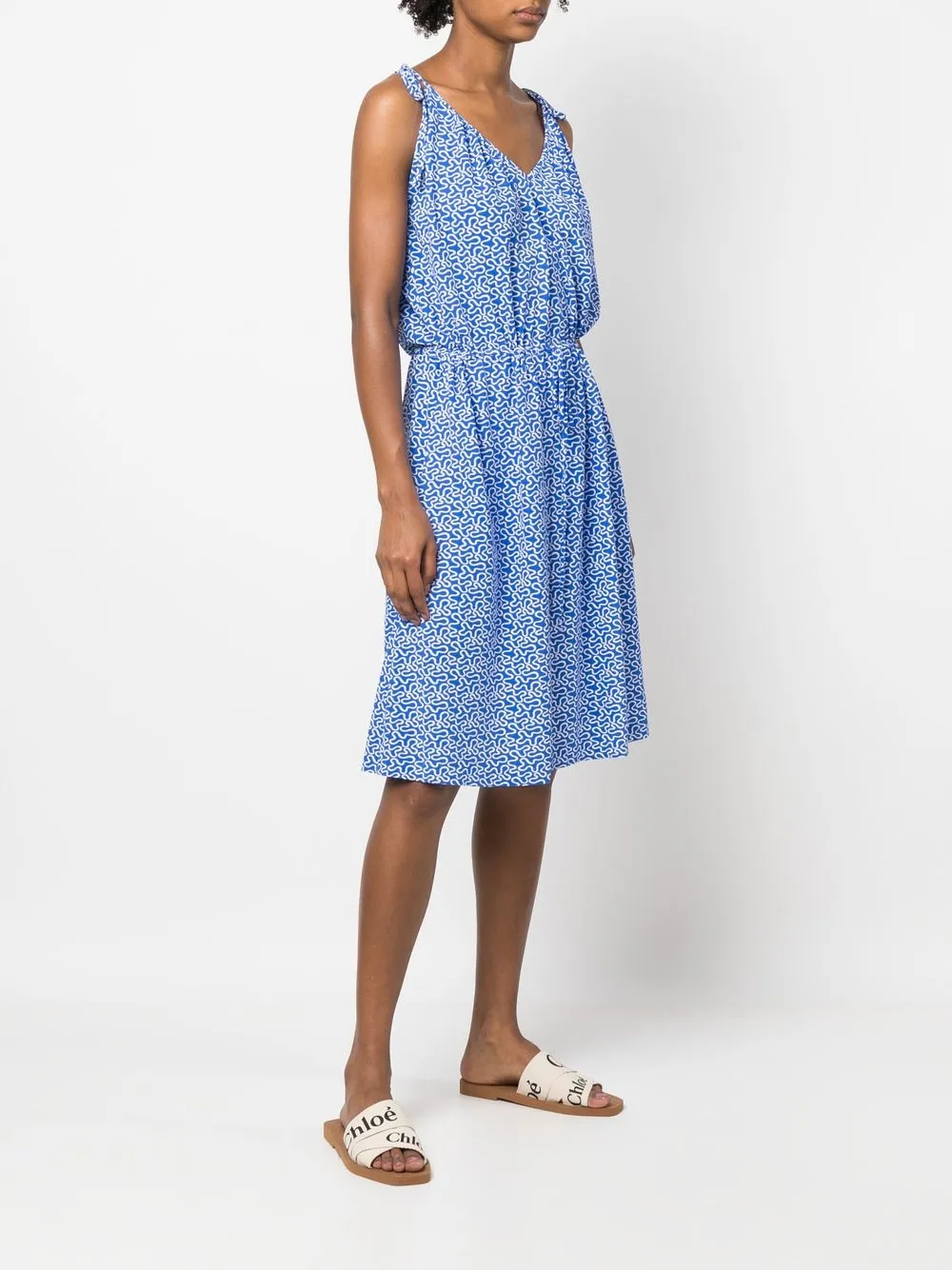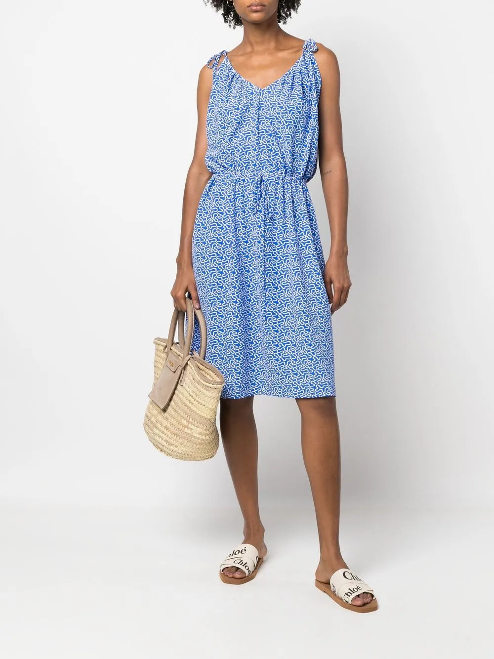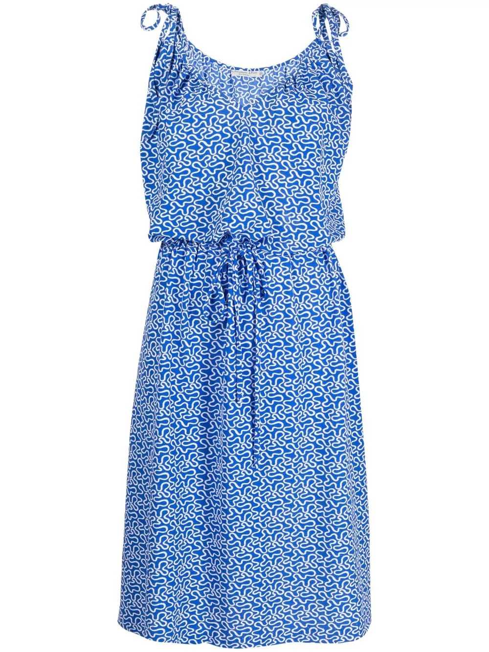 Bleu, blanc, motif géométrique, col v, bretelles à nouer, taille à lien de resserrage, coupe trapèze, hauteur genou. POSITIVELY CONSCIOUS – Votre choix : produit fabriqué selon des pratiques visant à réduire l’impact environnemental. Cet article a un impact environnemental réduit car il ne nécessite pas de nouvelles ressources. Vous êtes ainsi assuré·e de faire le bon choix pour la planète.
