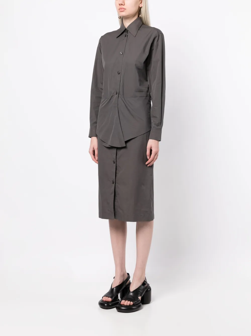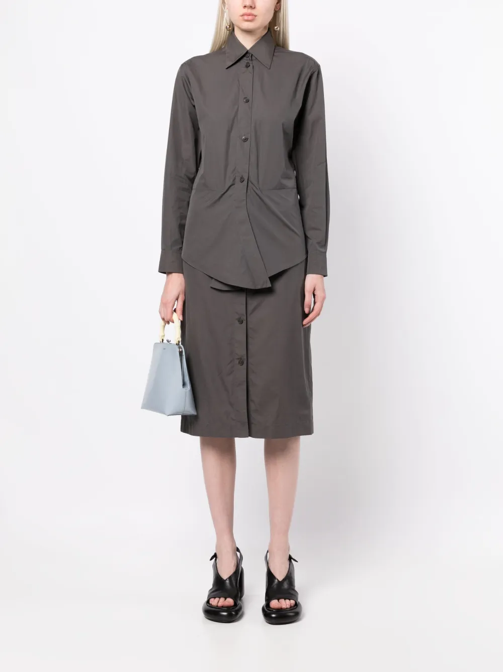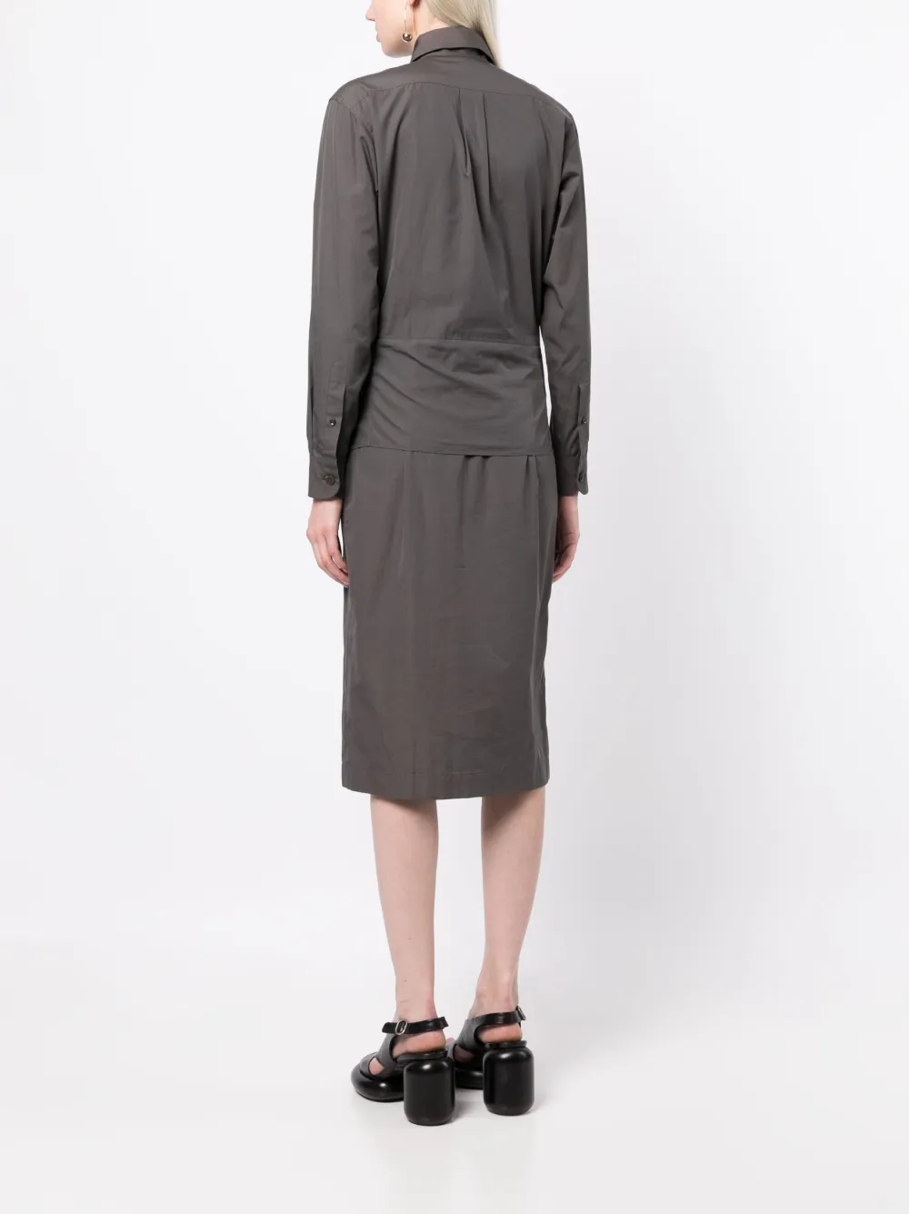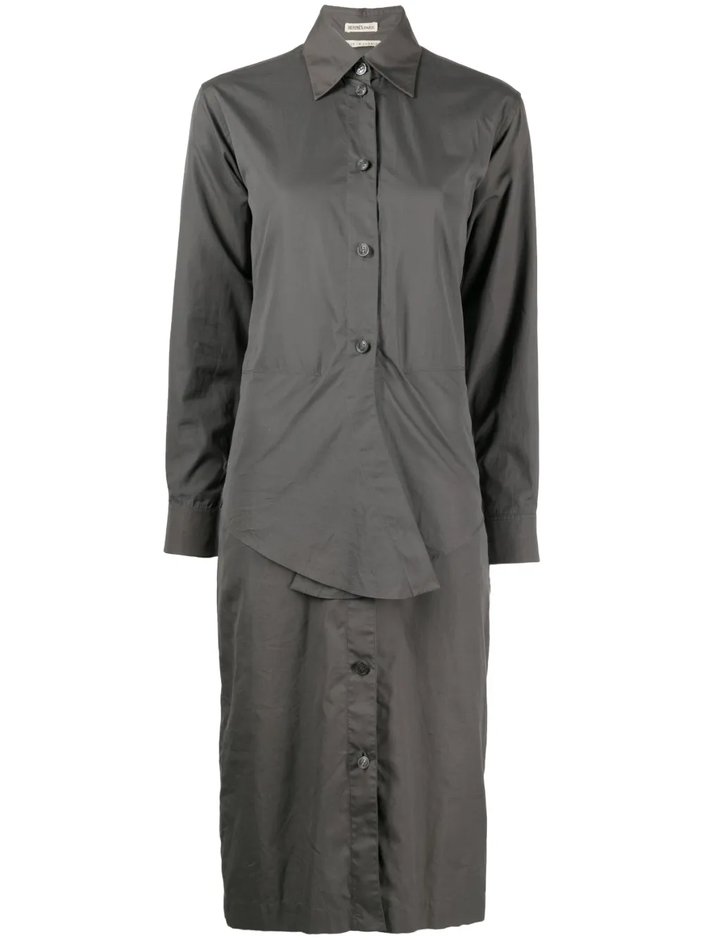 Gris, coton, effet superposé, détail de plis creux, col pointu plat, boutonnière sur le devant, manches longues, poignets boutonnés, ourlet incurvé, longueur au dessous du genou, ourlet droit. État : BON. Cette pièce d’occasion a précédemment été utilisée, cependant elle est en bon état et présente des signes minimes d’utilisation. Il peut s’agir d’une décoloration du matériau, du placage ou de griffes.. Pour en savoir plus sur ce qui rend un produit responsable, consultez notre page critères POSITIVELY CONSCIOUS.