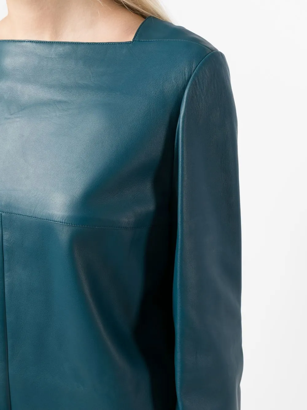 Bleu-vert turquoise, peau d’agneau, design à empiècements, encolure bateau, manches trois-quarts, coupe courte. État : BON. Cette pièce d’occasion a précédemment été utilisée, cependant elle est en bon état et présente des signes minimes d’utilisation. Il peut s’agir d’une décoloration du matériau, du placage ou de griffes.. POSITIVELY CONSCIOUS – Votre choix : produit fabriqué selon des pratiques visant à réduire l’impact environnemental. Cet article a un impact environnemental réduit car il ne nécessite pas de nouvelles ressources. Vous êtes ainsi assuré·e de faire le bon choix pour la planète.