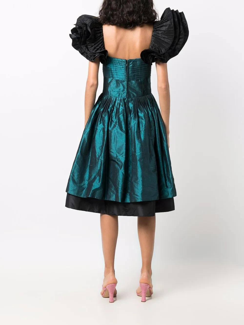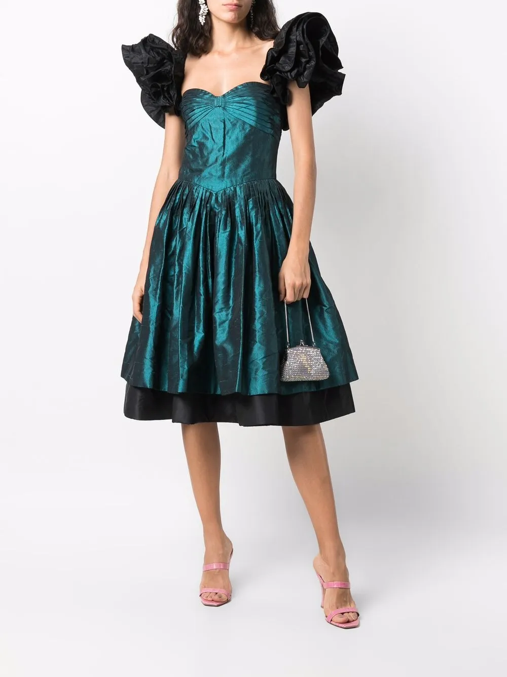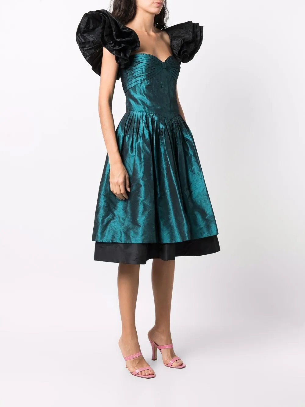 Détails de volants, détails superposés, encolure cœur, fermeture zippée dissimulée à l’arrière, manches bouffantes courtes, jupe évasée, longueur au dessous du genou. POSITIVELY CONSCIOUS – Votre choix : produit fabriqué selon des pratiques visant à réduire l’impact environnemental. Cet article a un impact environnemental réduit car il ne nécessite pas de nouvelles ressources. Vous êtes ainsi assuré·e de faire le bon choix pour la planète.