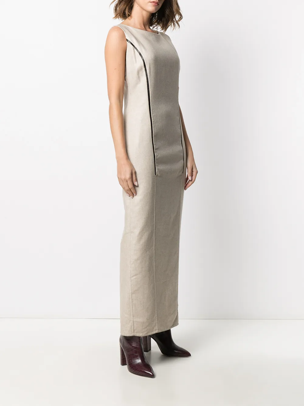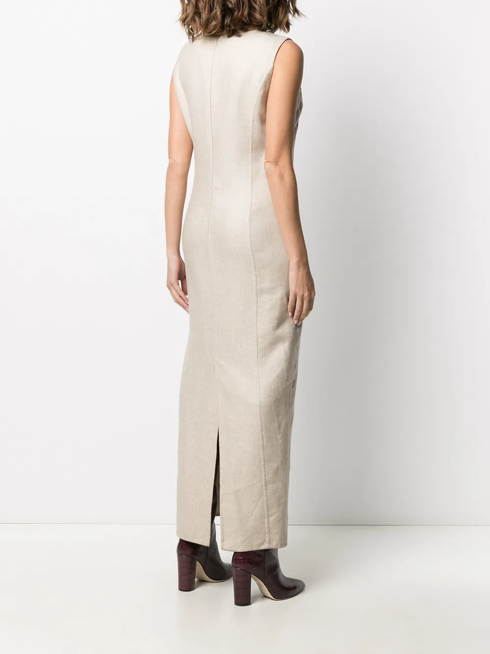Encolure ronde, fermeture zippée dissimulée à l’arrière, design sans manches, fente arrière, longueur cheville, doublure intégrale. Veuillez noter que cet article n’est pas neuf et peut présenter de légères imperfections qui témoignent de son histoire. En lui offrant une seconde vie, vous faites le choix d’avoir un impact “POSITIVELY CONSCIOUS” sur notre planète.